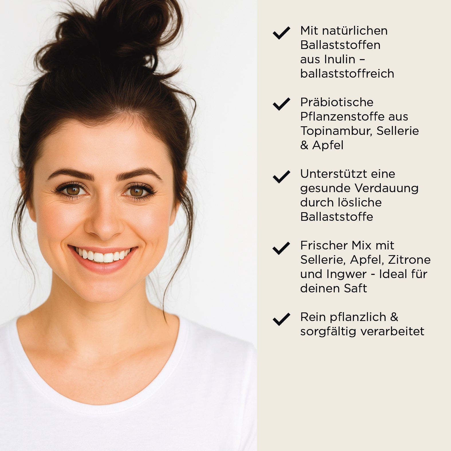 A digestible instant celery juice with inulin from Jerusalem artichoke and ginger for a good stomach feeling