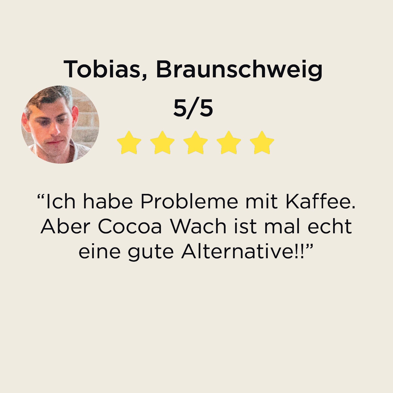 Cocoa Wach ist schokoladig-lecker und enthält natürliches Koffein aus Guaraná*. Eine tolle Kaffee-Alternative.