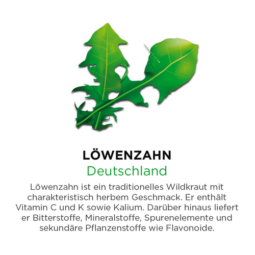 Zutaten: Weizengras*, Gerstengras*, Moringa*, Löwenzahn*, Spinat*, Spirulina*, Chlorella* und Baobab*. *Alle Zutaten aus kontrolliert biologischem Anbau.
