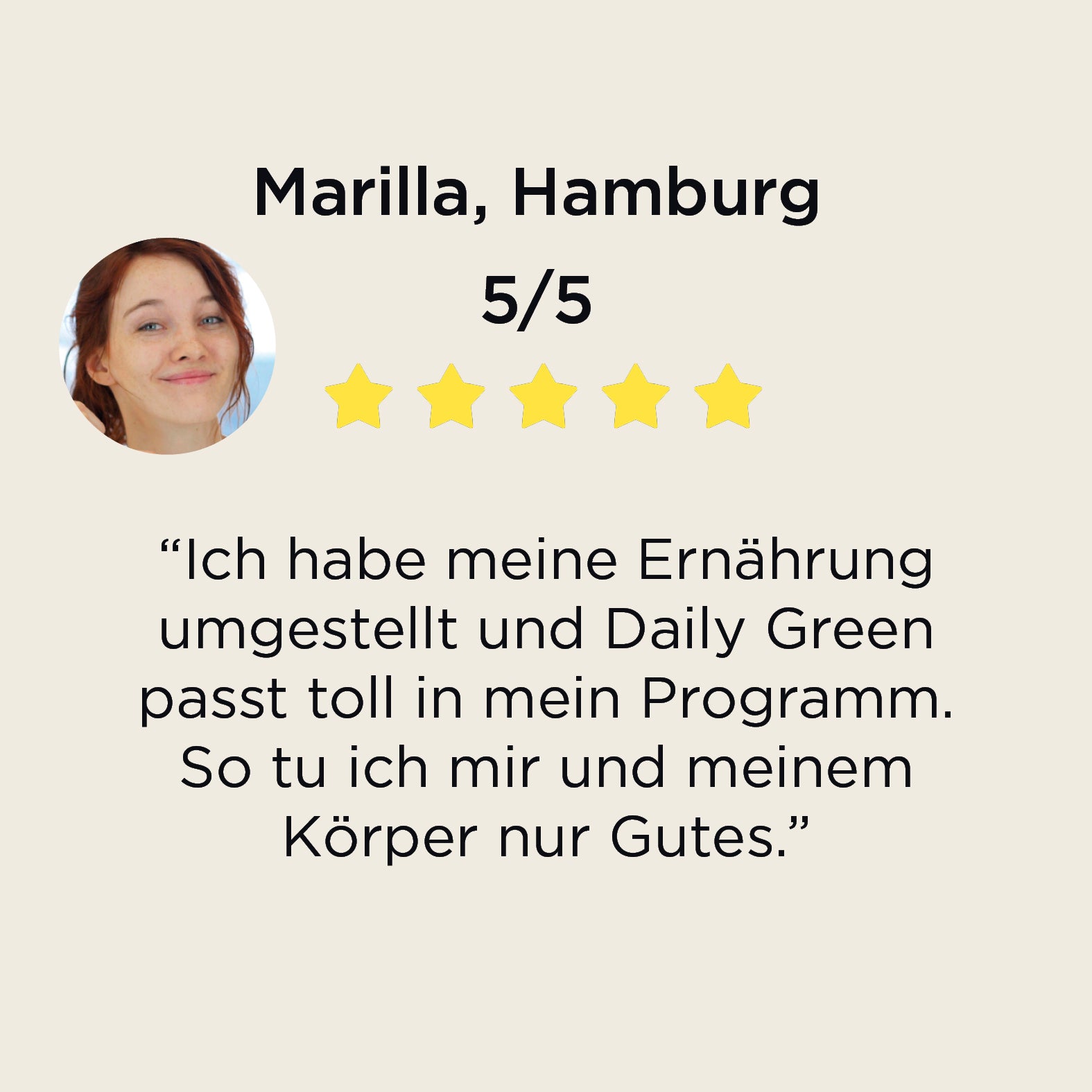 Da ich mehrere Produkte bestellt habe, möchte ich auch hier kurz sagen, dass mir Daily Green gefällt. Ich will mich hier nicht voll Lobes überschlagen, aber der Mix ist wie für mich gemacht!