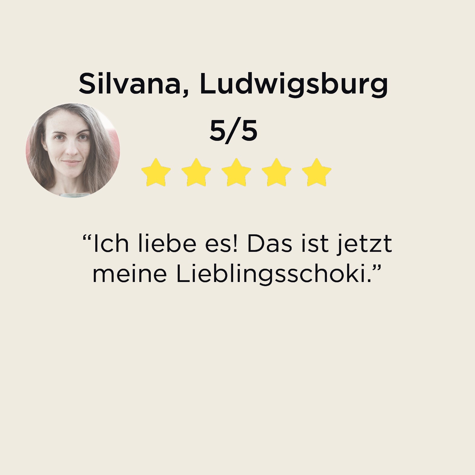 Zutaten: 46% Kakao*, 19% Kokosnussmilchpulver*, Maca*,