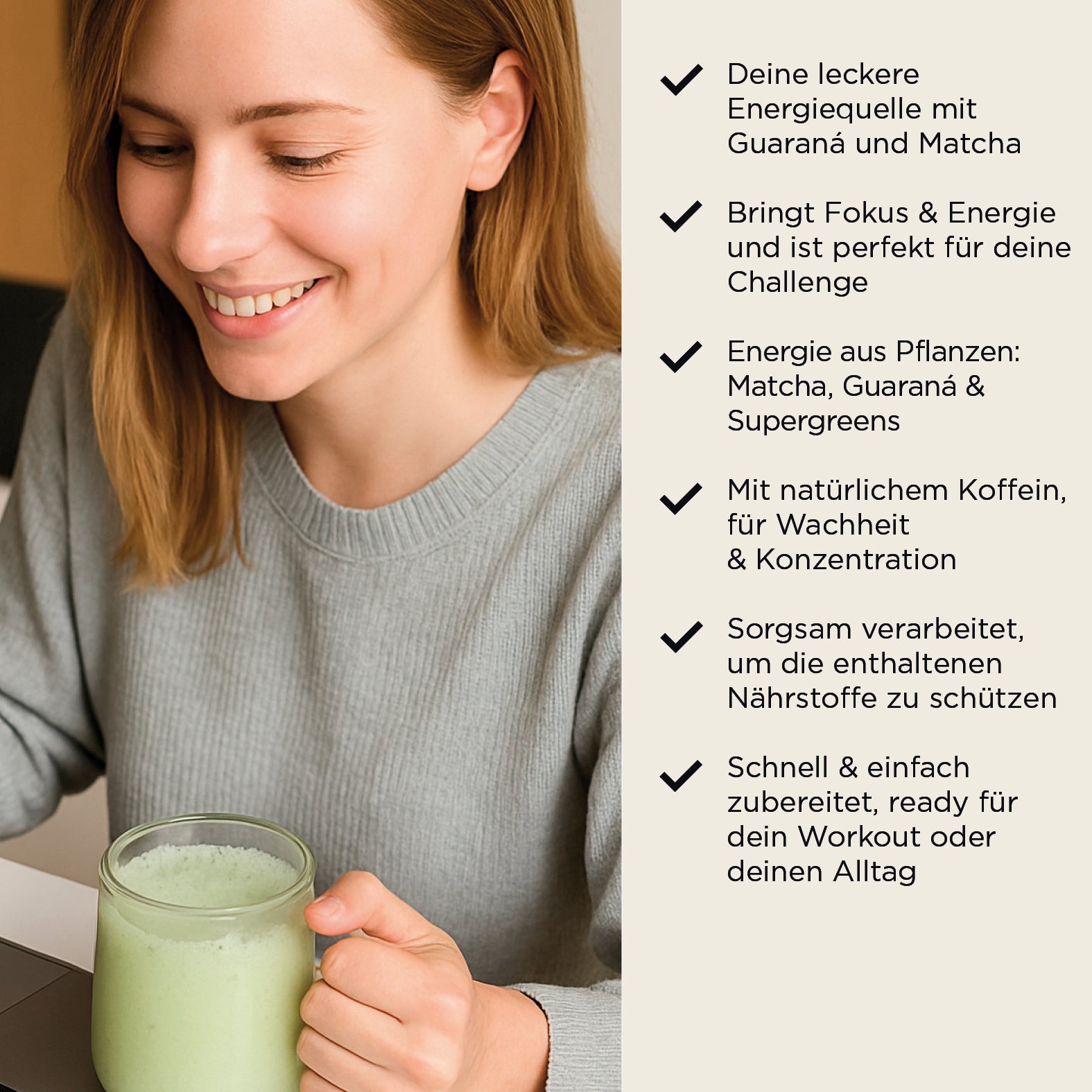 - Mit natürlichem Koffein aus Matcha – für wache & aktive Momente