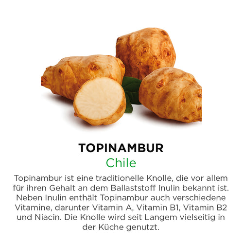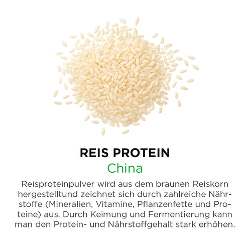 Zutaten: Haferprotein*, Reisprotein*, Lúcuma*, Topinambur*, Erbsenprotein*, Acerola* und Açai*. *Zutaten aus kontrolliert biologischem Anbau.