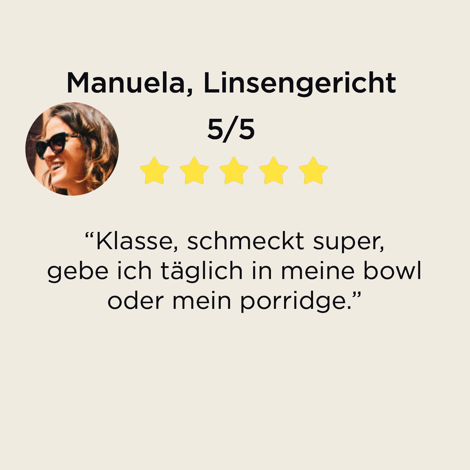 Das Ergebnis ist ein Mix, der dir wichtige Nährstoffe liefert. 100 % Bio, vegan & glutenfrei.