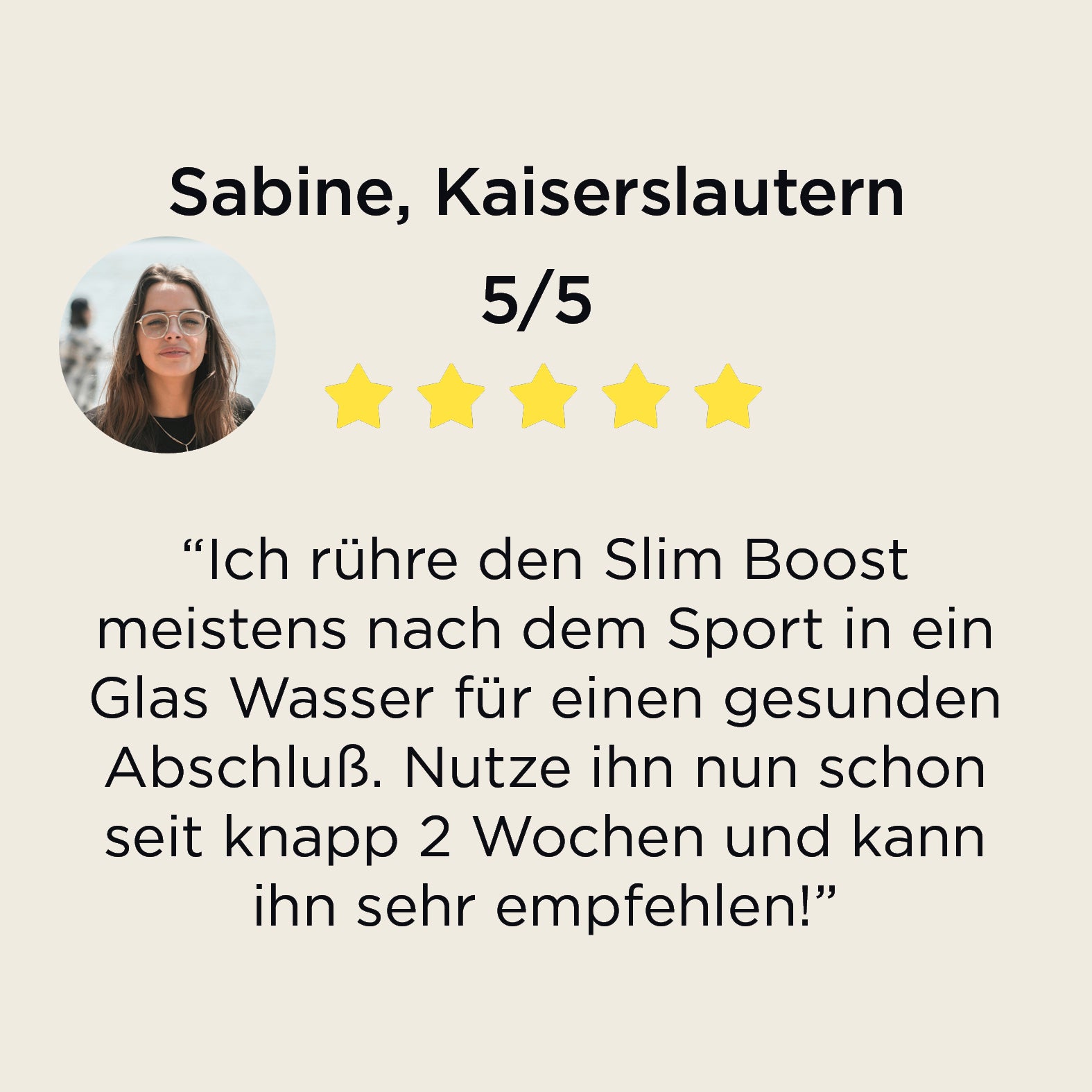A: Ja, Slim Boost lässt sich problemlos täglich in deine Ernährung integrieren. Viele Kund:innen genießen es als Shake, im Smoothie oder eingerührt in Joghurt oder Porridge.
